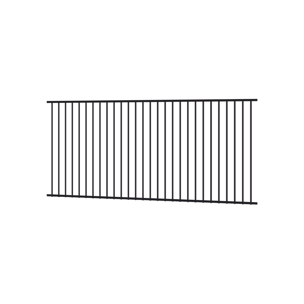 Panels are 1200 high x 2450mm and 3000mm wide powder coated in Black Satin, tubes 16mm diameter welded at Top & Bottom rail 38x25mm with tube punched through rail @ 72mm apart.
